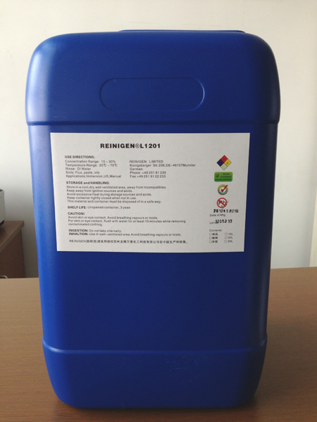 特性: · 操作简单,使用方便。 · 使用寿命比传统的表面活性清洗剂长3-10倍。溶液更换次数的减少直接导致需处理的废液量减少,从而降低了工艺成本。 · 对铝和环氧表面具有良好的兼容性。 · 不会在清洗设备中留下残留物。 · 无需使用消泡剂。 · 在漂洗单元,不会有有机物沉积。 · REINIGEN® L1201同样可以应用在清洗传送带,或用于清除被极度烘烤的助焊剂残留物,如在焊接炉及类似的应用中。